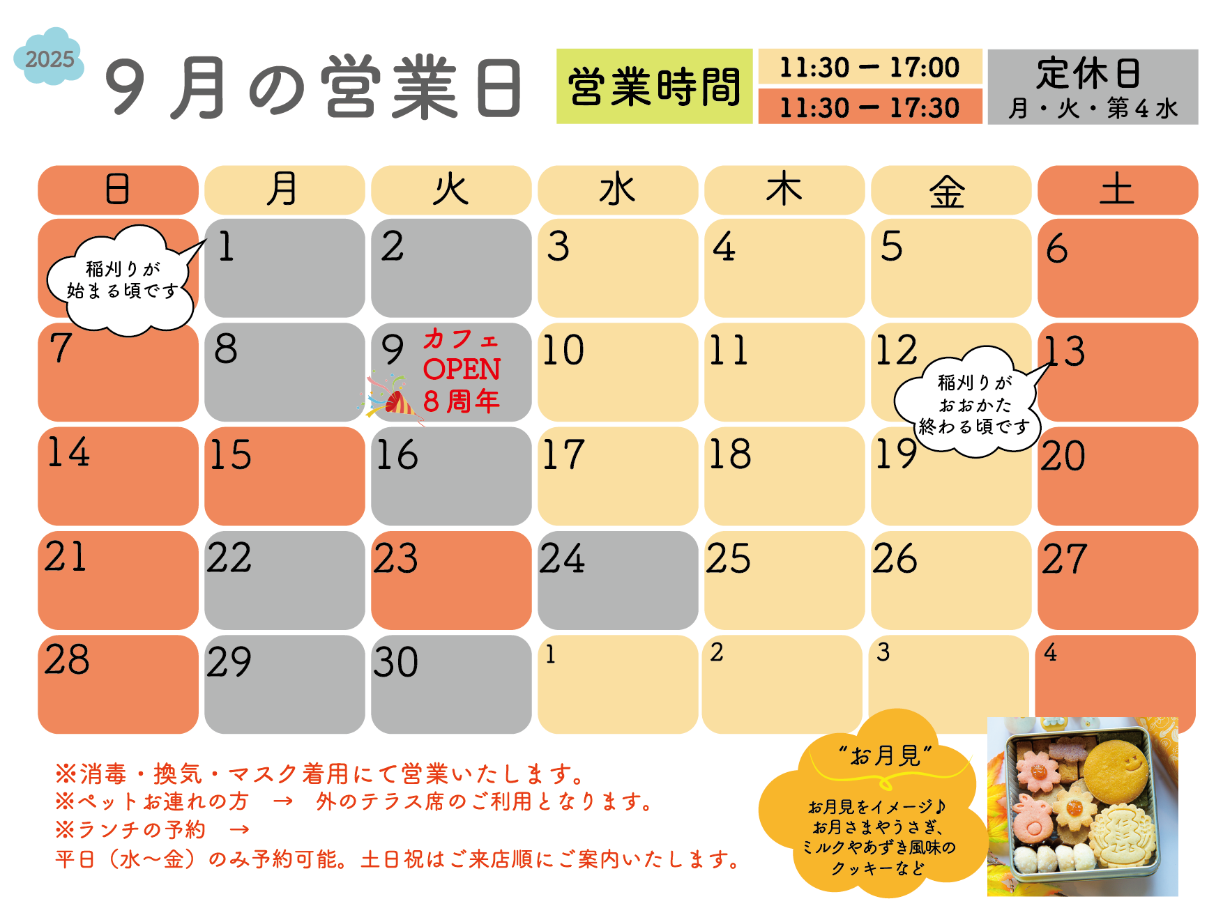 (水曜日:ドリンク&ケーキのみ、木〜日曜日:ランチ営業)とします