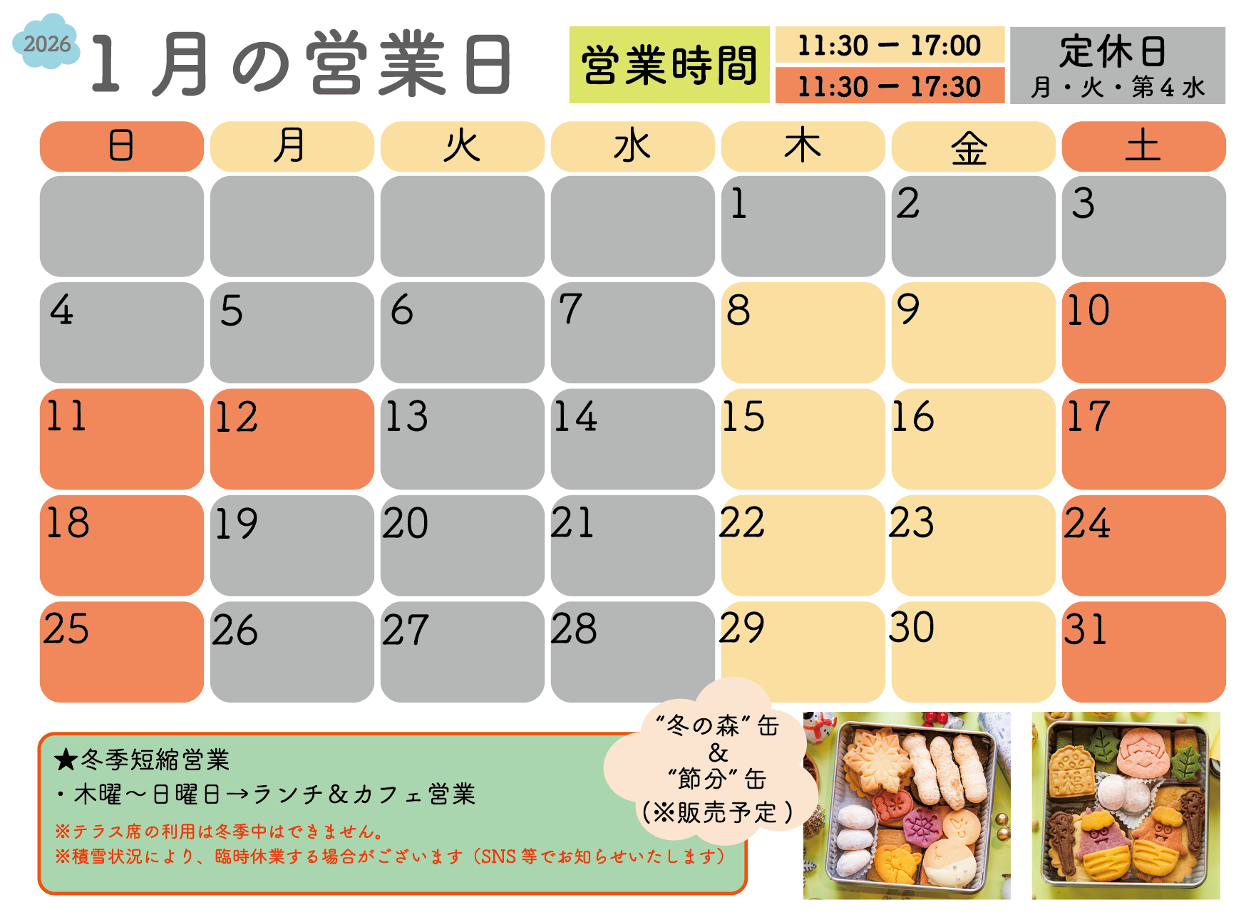 1月〜3月までは冬季のため営業時間が変更になります