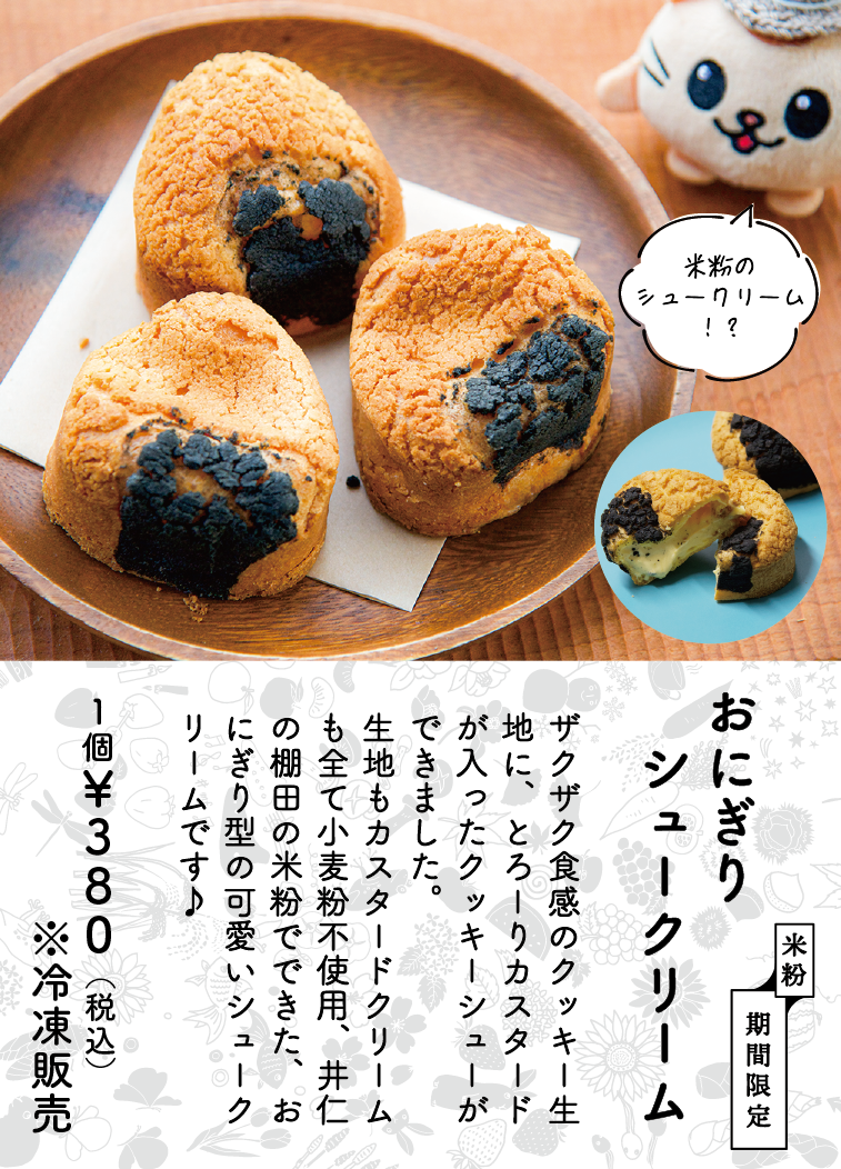 「おにぎり米粉シュークリーム」発売中!
